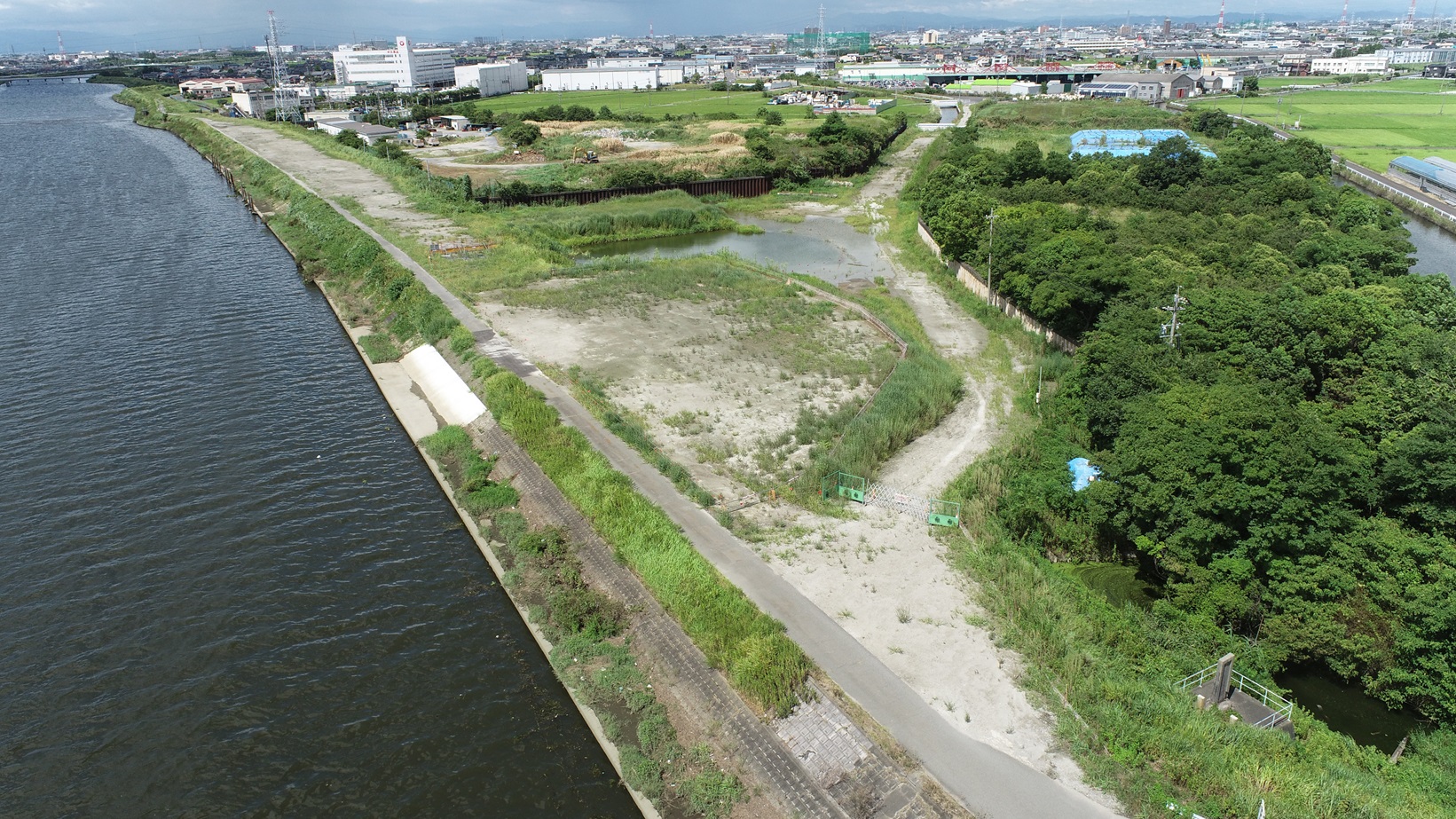 津島市の東側に広がる新十三沖永地区は、海抜ゼロメートル地帯であり雨水や農業用水を日光川に流す際に自然排水ができないため、排水機場による機械排水が必要です。現在稼働している十三沖永神明排水機場の老朽化に伴い、排水機場の建て替えが必要となっています。